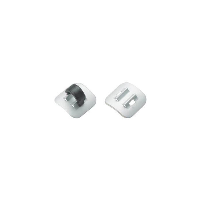 Jagwire's Stick-On Cable Guides are made of lightweight aluminum with adhesive on the bottom. The aluminum lets them conform to any shaped frame tube and the adhesive holds fast. They come with Jagwire's C-Clips, nylon cable clips that snap onto the guides to hold the cables neatly in place. You get a pack of 4.