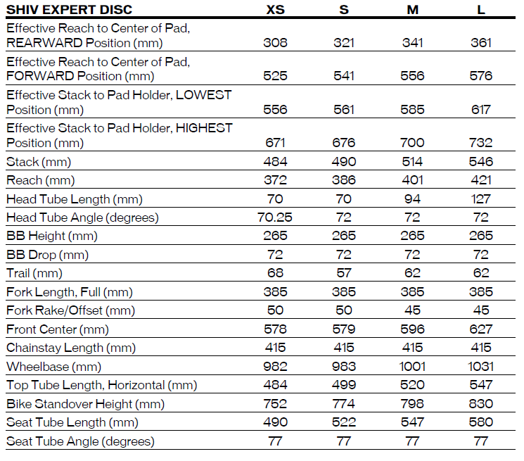 - We also made sure that the Shiv is plenty adjustable for you to dial-in your fit. The frame comes in four different sizes that are based on over 1,000 Retül fits with actual athletes, all to ensure that your ideal fit is achievable. Our Shiv Finder tool makes it easy to determine your size based on your current position, so getting your most powerful aerodynamic position is easily achievable.